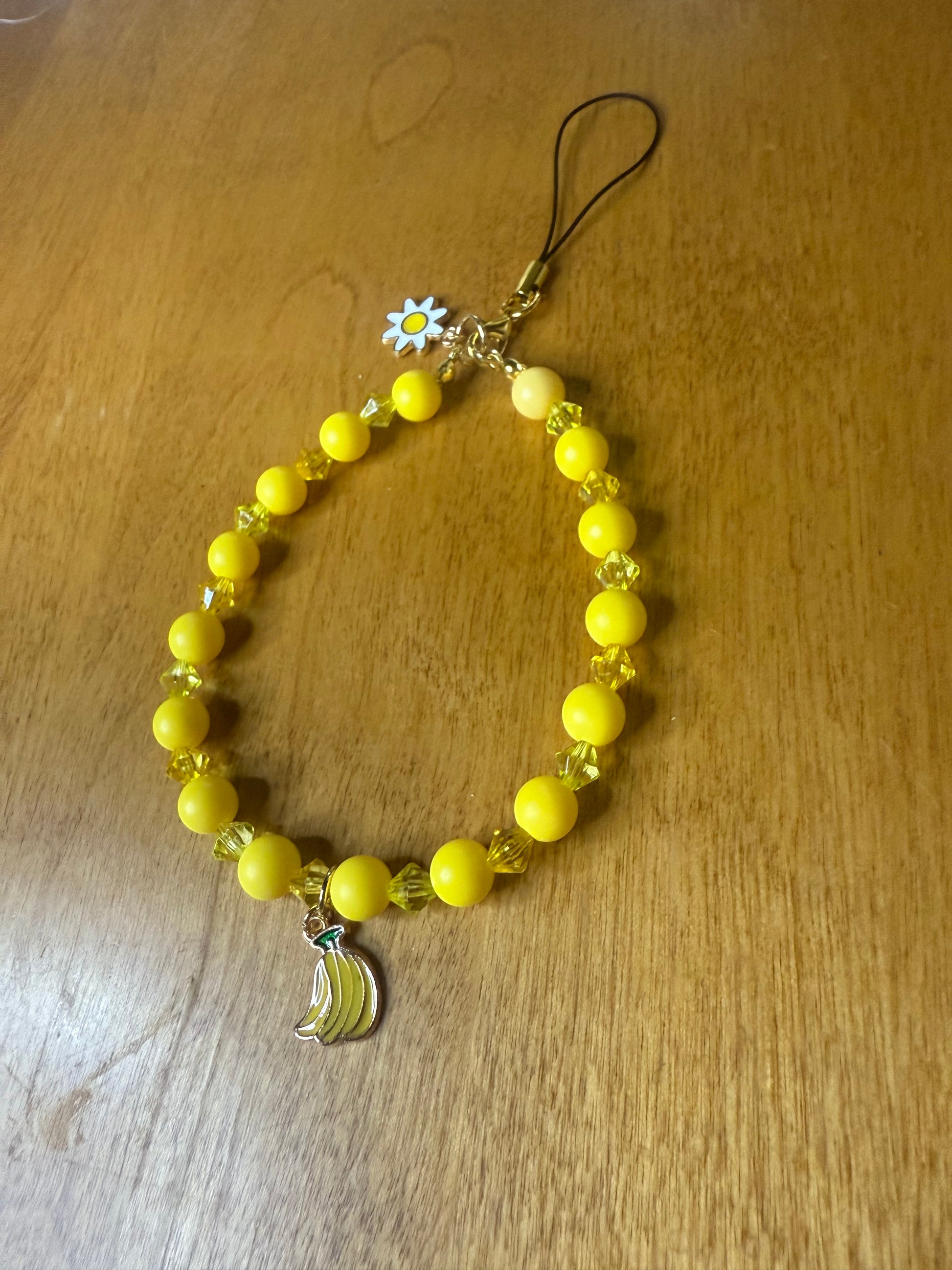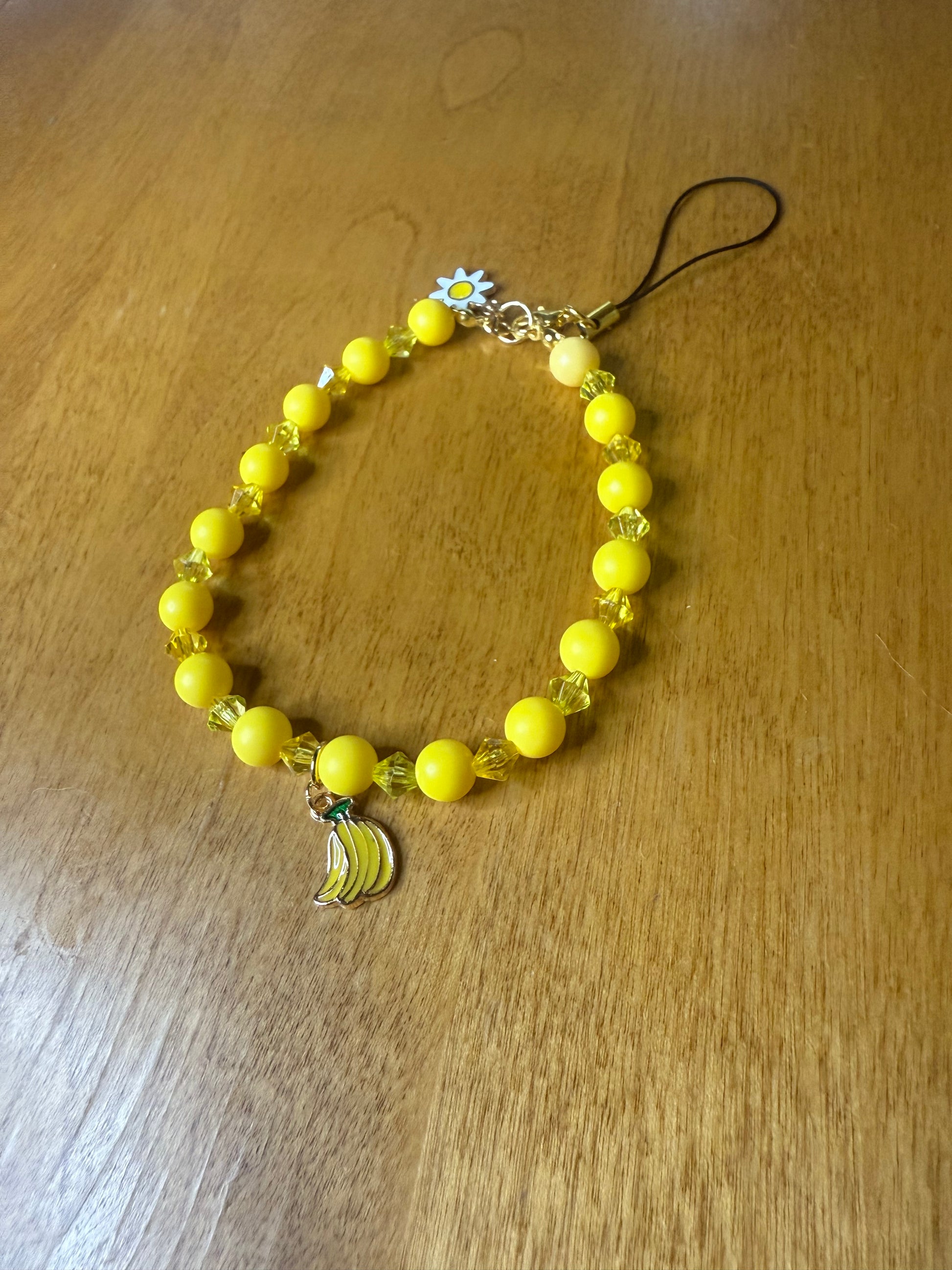 Add a fun and playful touch to your phone with our Banana Bracelet/Phone Charm. The charming yellow banana and flower design will bring a pop of summer to your device. An adorable and unique accessory that's perfect for any banana lover.