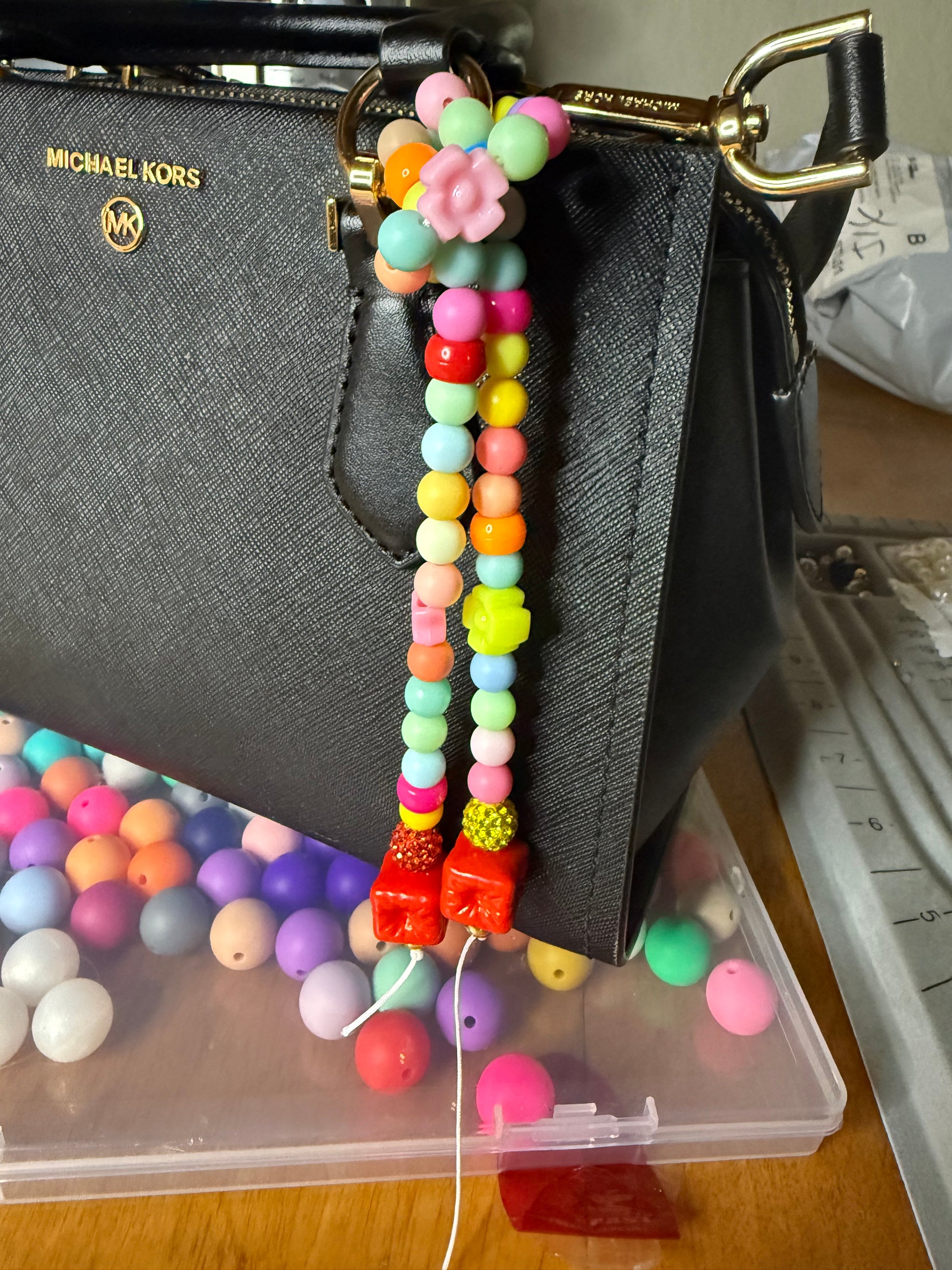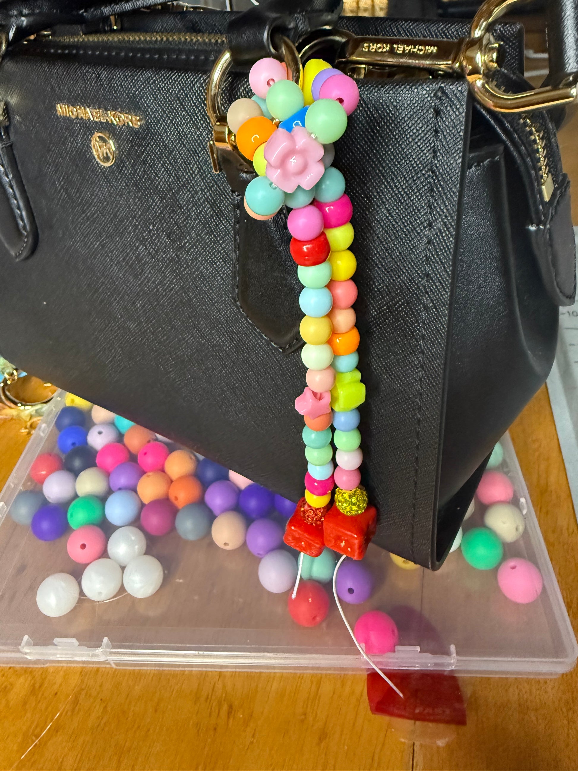 Add a pop of color to your purse with our adorable pony bead charm. The bold and playful design will make a statement while adding a touch of fun to your accessory collection. Perfect for those looking to add a unique and vibrant touch to their outfit.