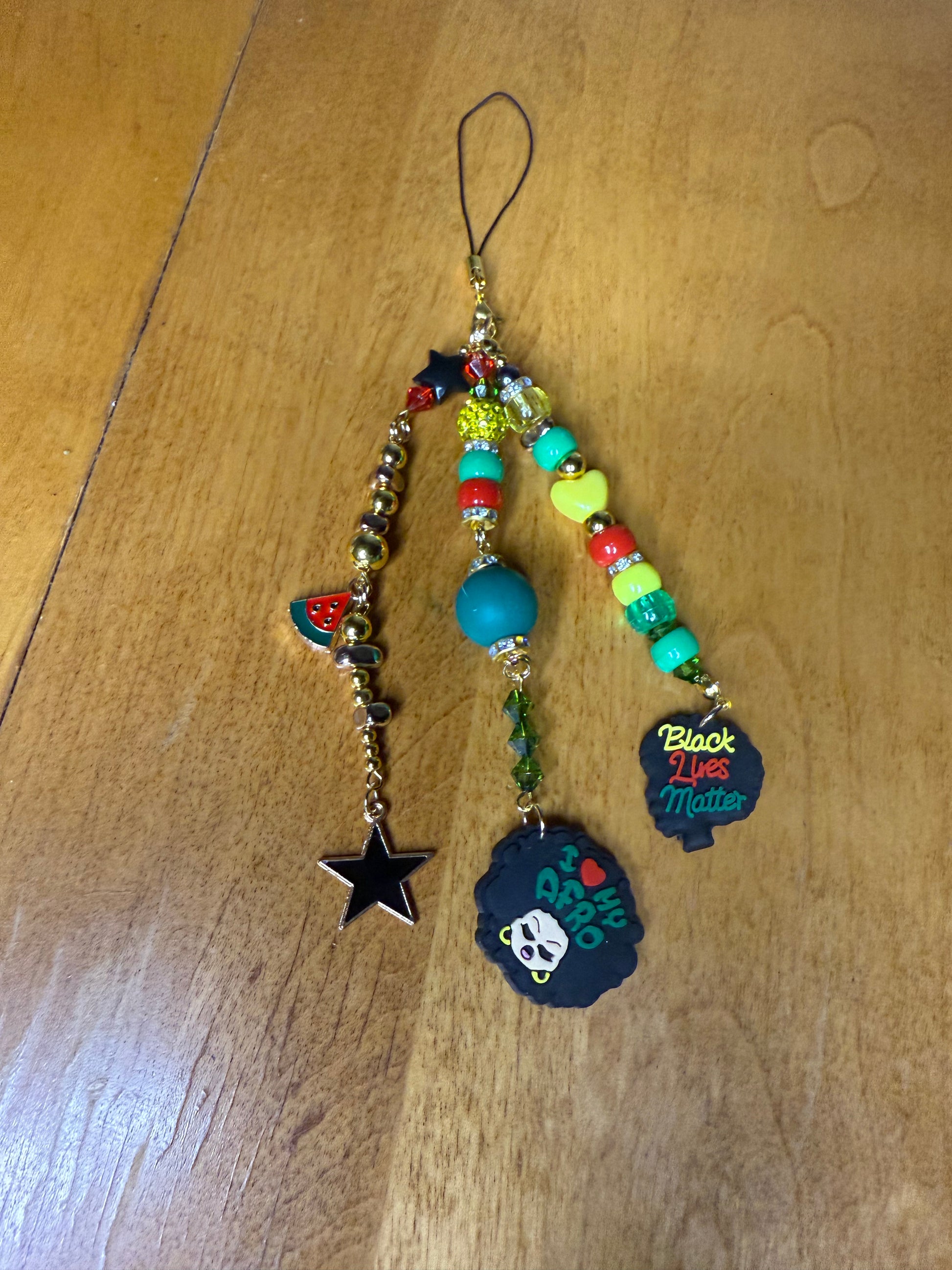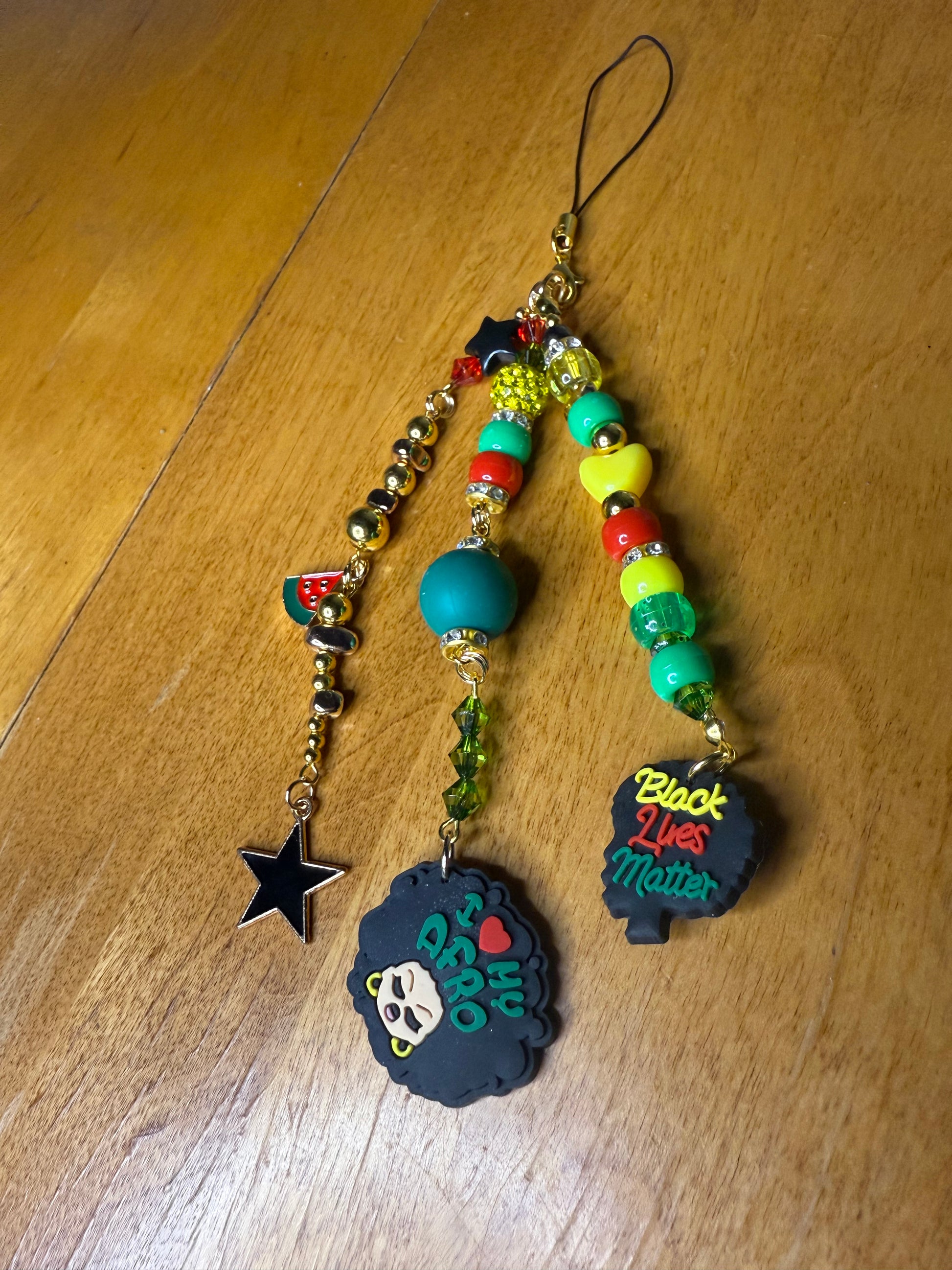 Enhance your phone with our Ilovemyafro phone charm. Show off your natural beauty with the beautiful Jamaican-inspired color and black Afro queen design. A perfect accessory for any Afro-centric individual.