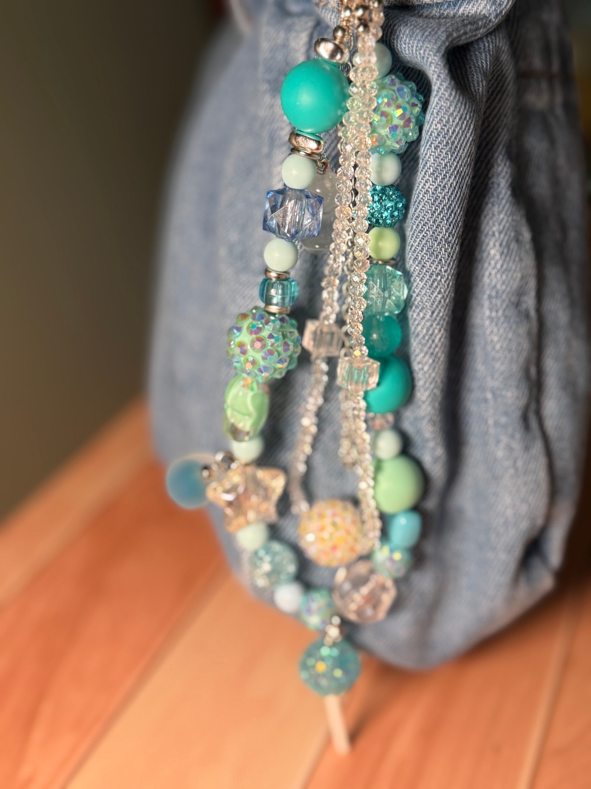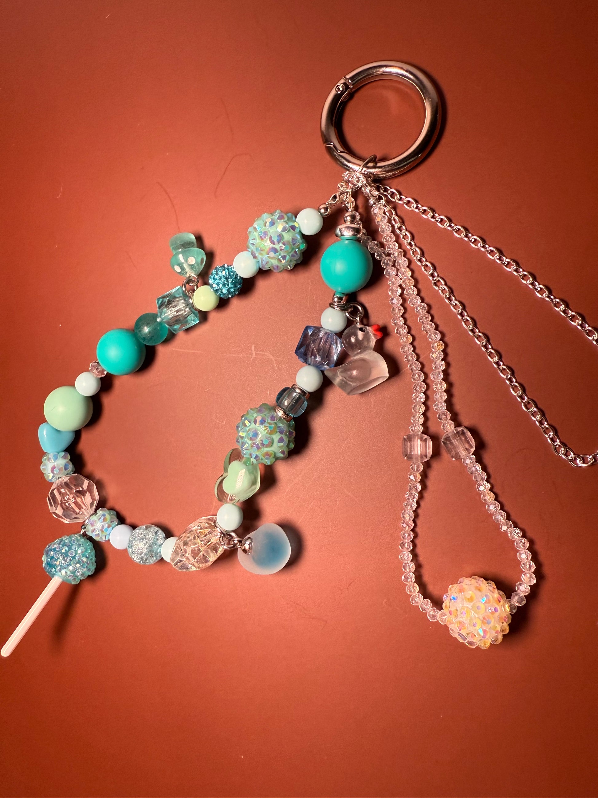 Add a touch of sparkle to your purse with our light blue glamsucker charm. This purse charm features different shades of blue, making it both pretty and unique. Perfect for the fashion-forward individual looking for a subtle yet eye-catching accessory.