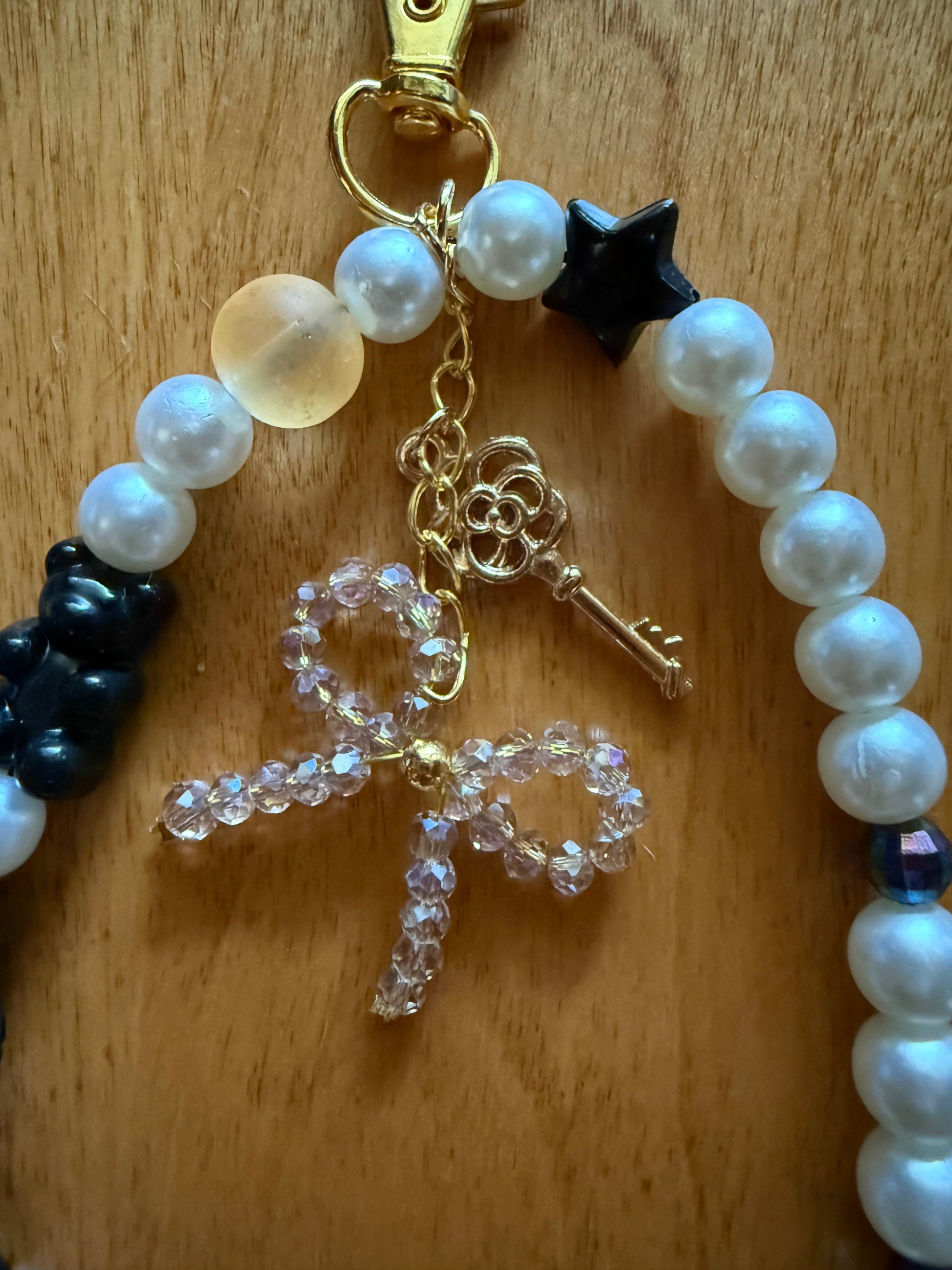 Add a touch of glamour and cuteness to your handbag with our Little Bow Purse Charm. Handcrafted with love, this sparkly bow is sure to catch eyes and bring a touch of shine to your style. Elevate your handbag game with this gorgeous accessory.