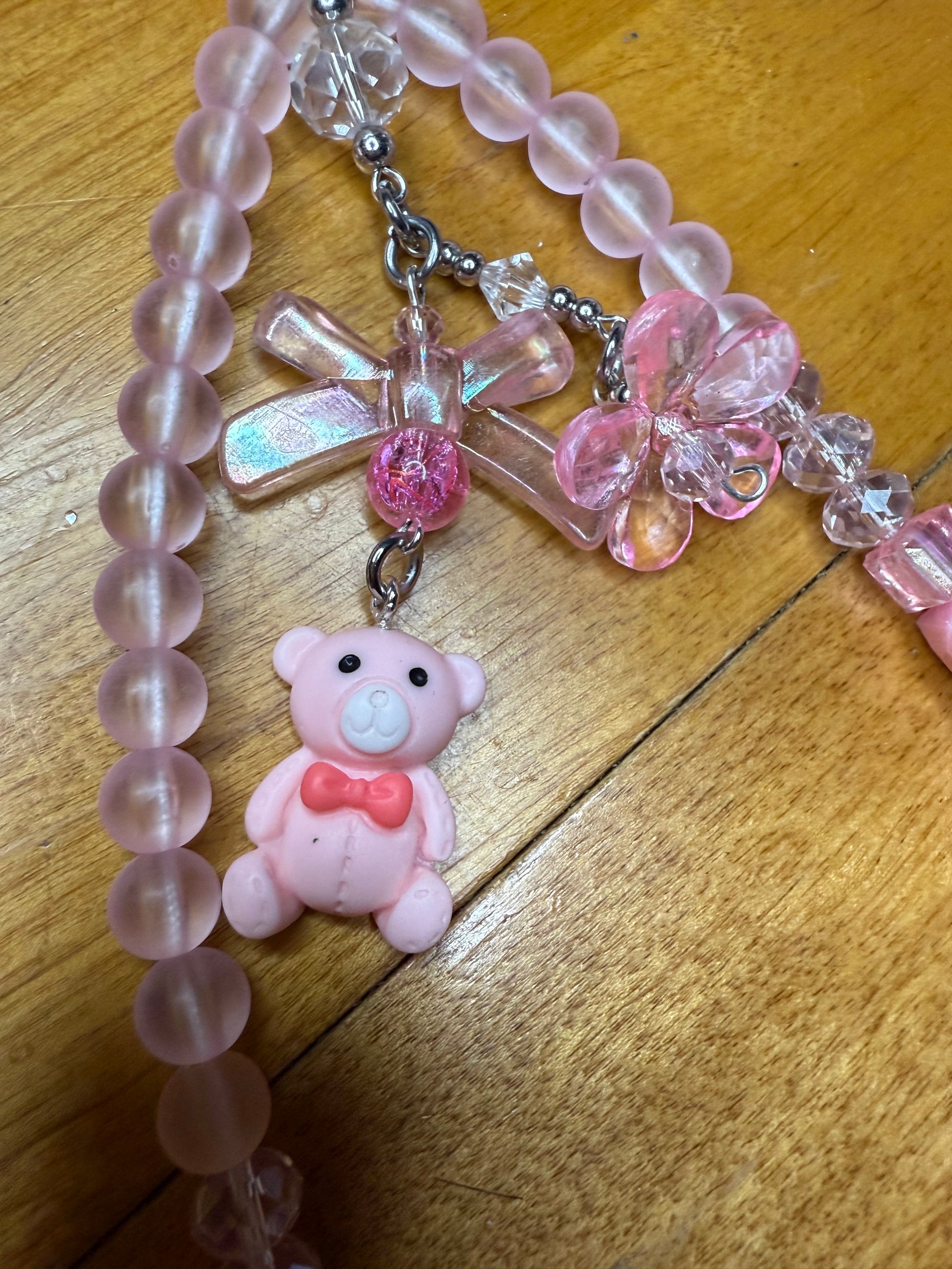 Add a touch of cuteness and sparkle to your purse or any accessory with our Pink Bear Purse Charm. Featuring a crystal flower charm, this purse charm will elevate your style and make your belongings stand out."