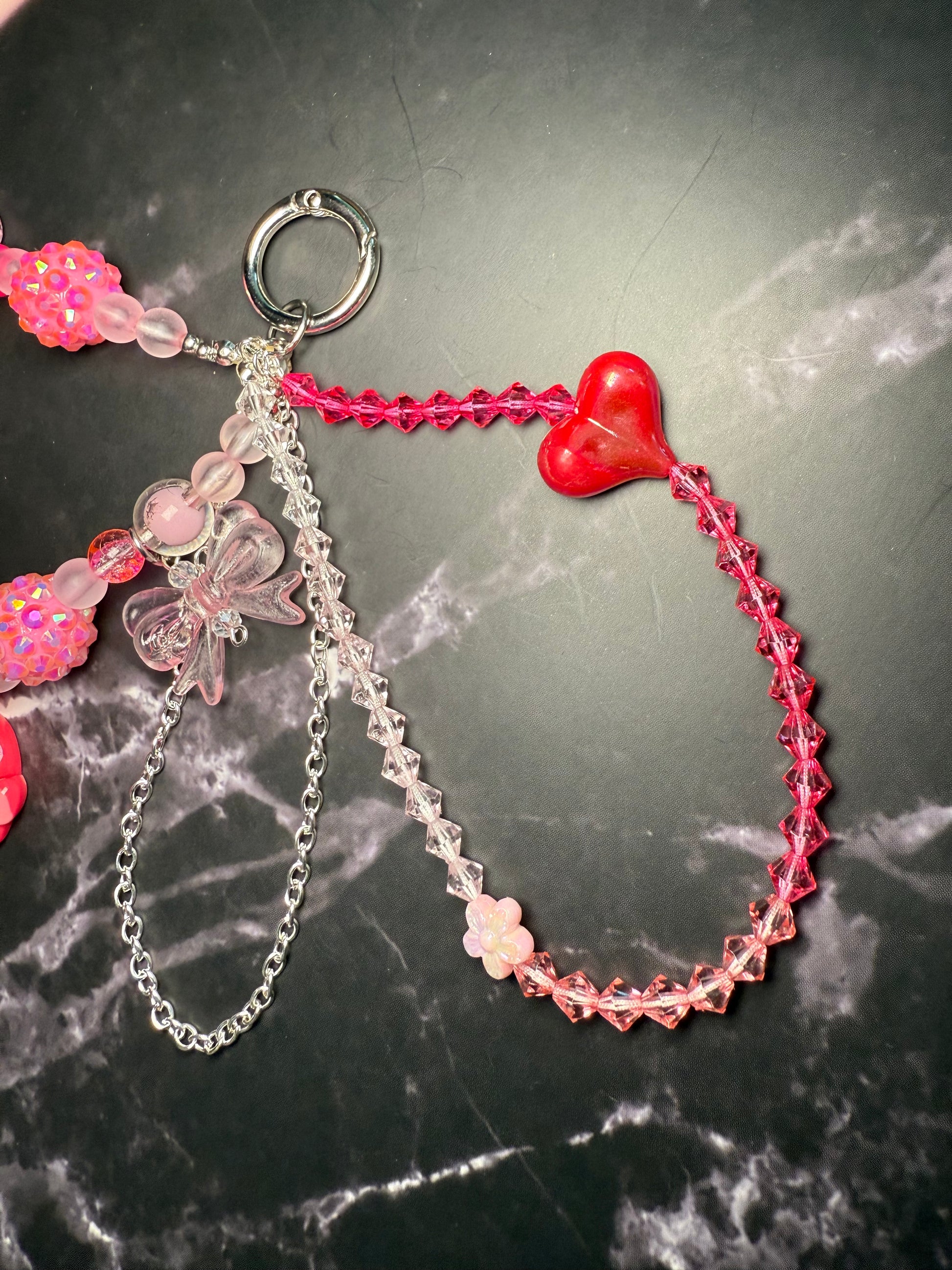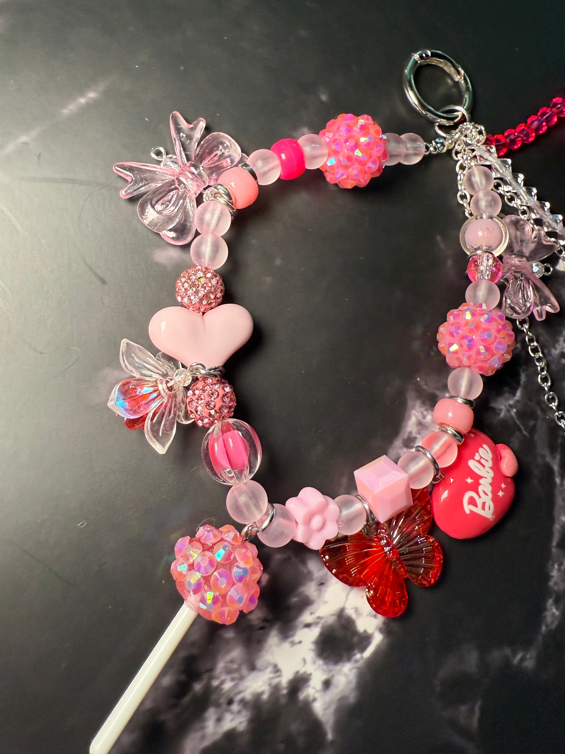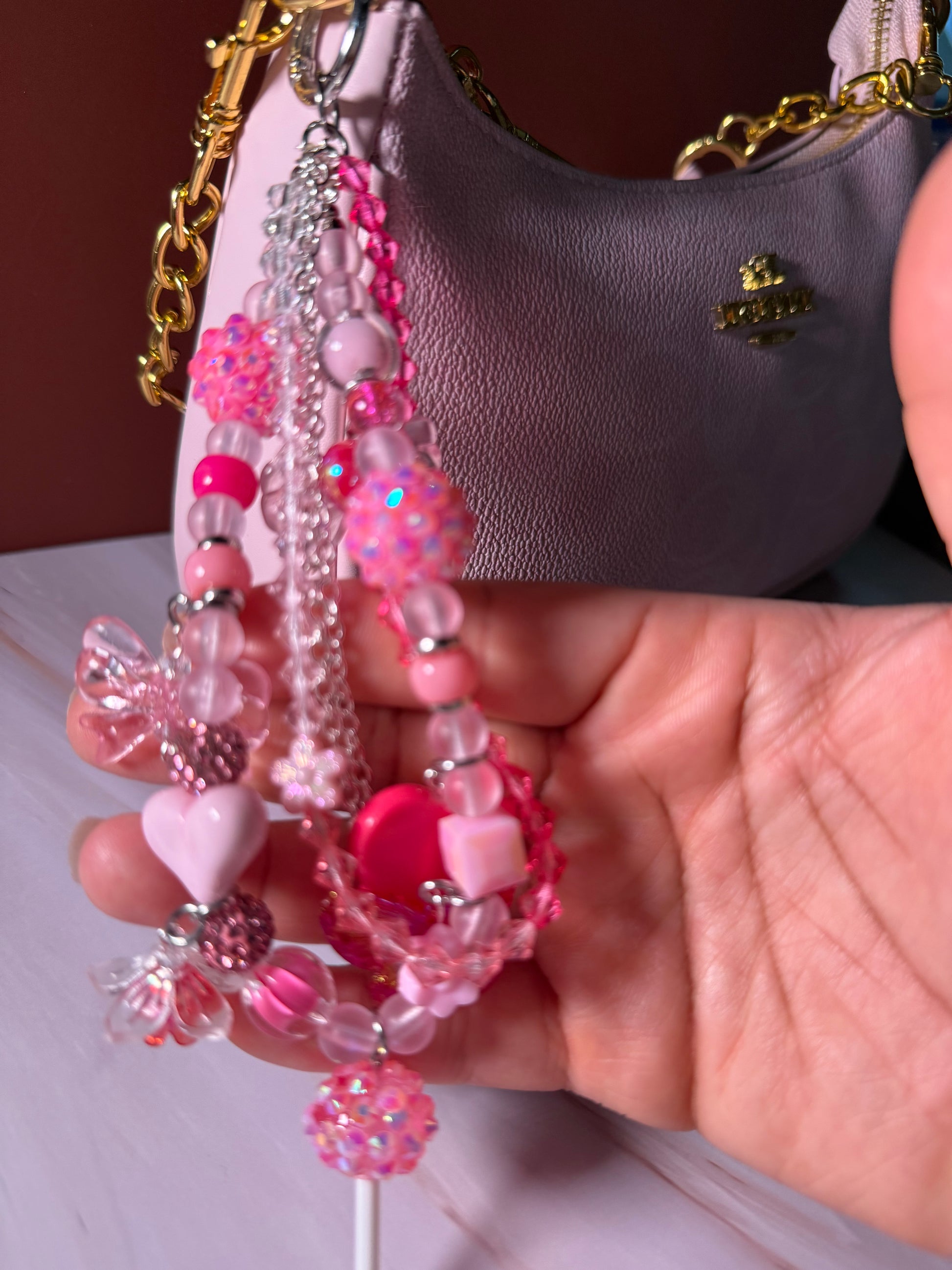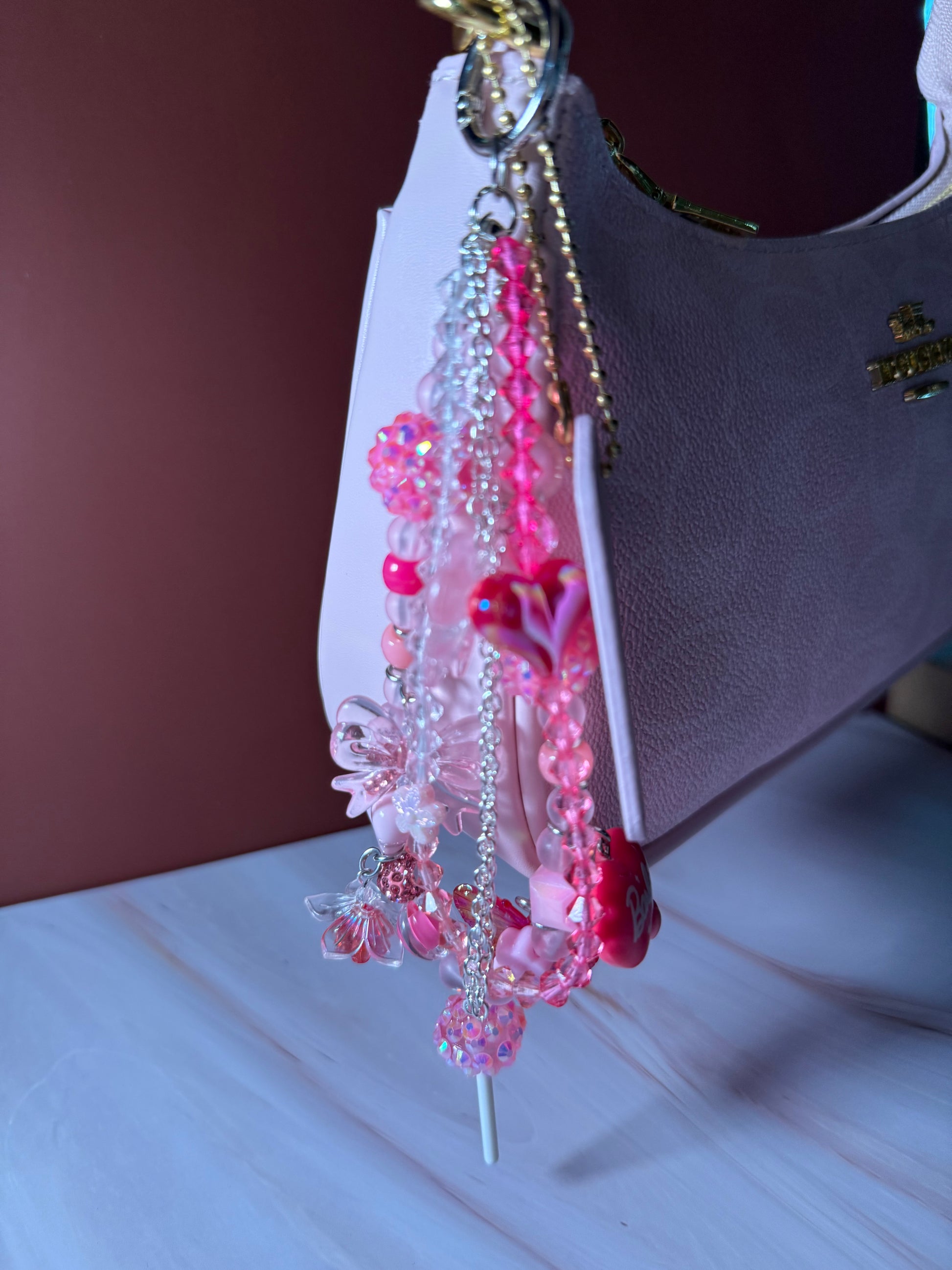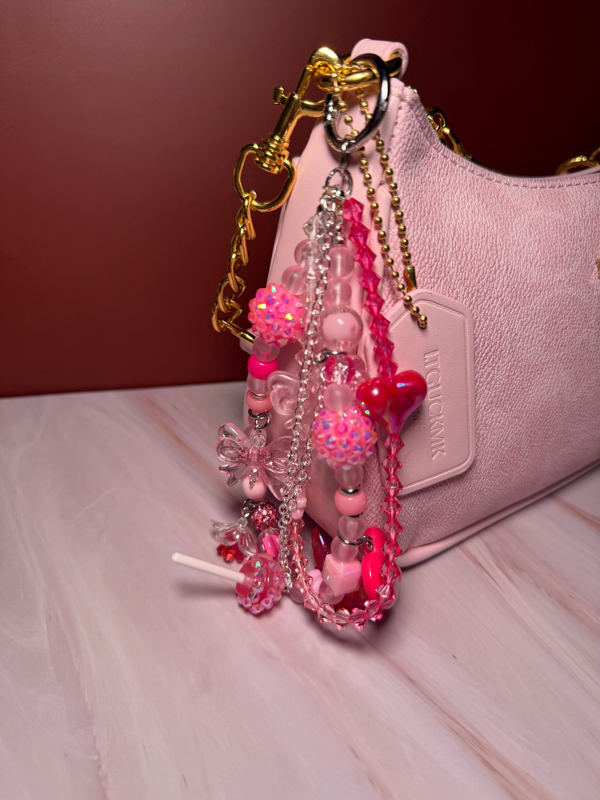 Elevate your style with our Pink Glamsucker purse charm. Handmade with bold and soft pinks, this charm is crafted with love and bedazzled with sparkling beads. Add a touch of glam to any purse or bag with this unique and eye-catching accessory.