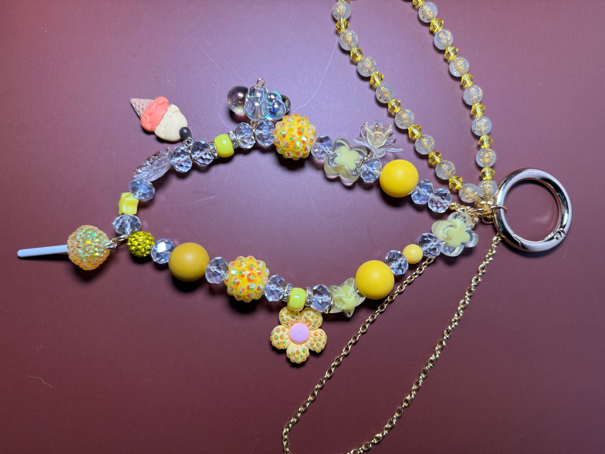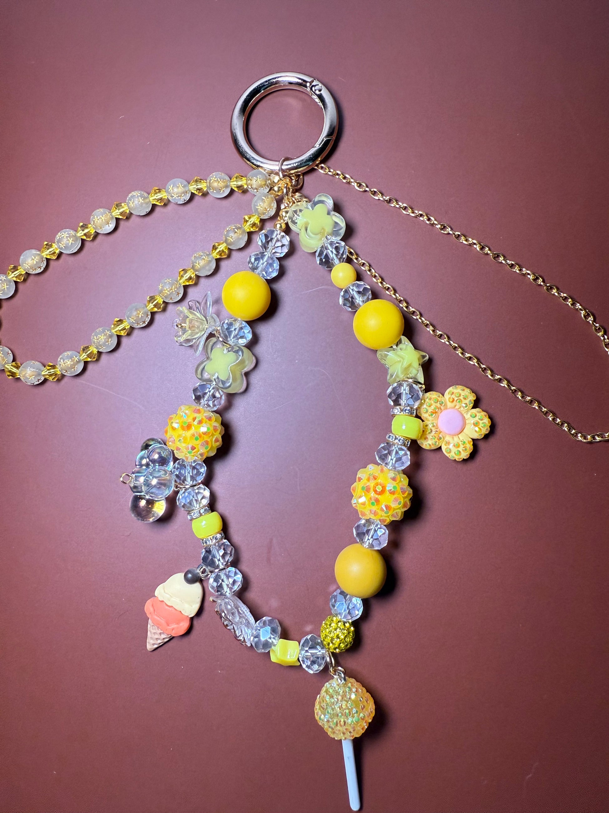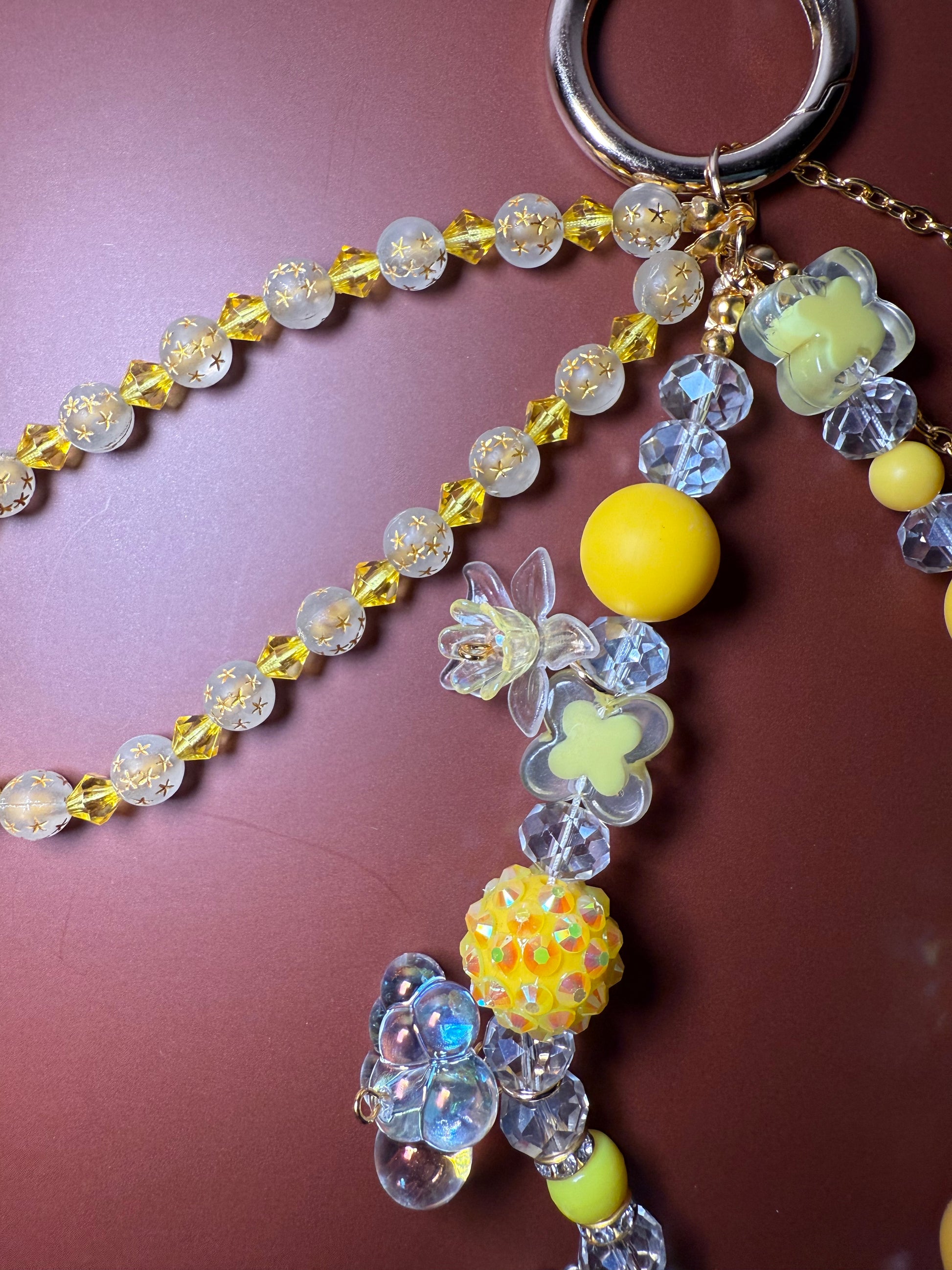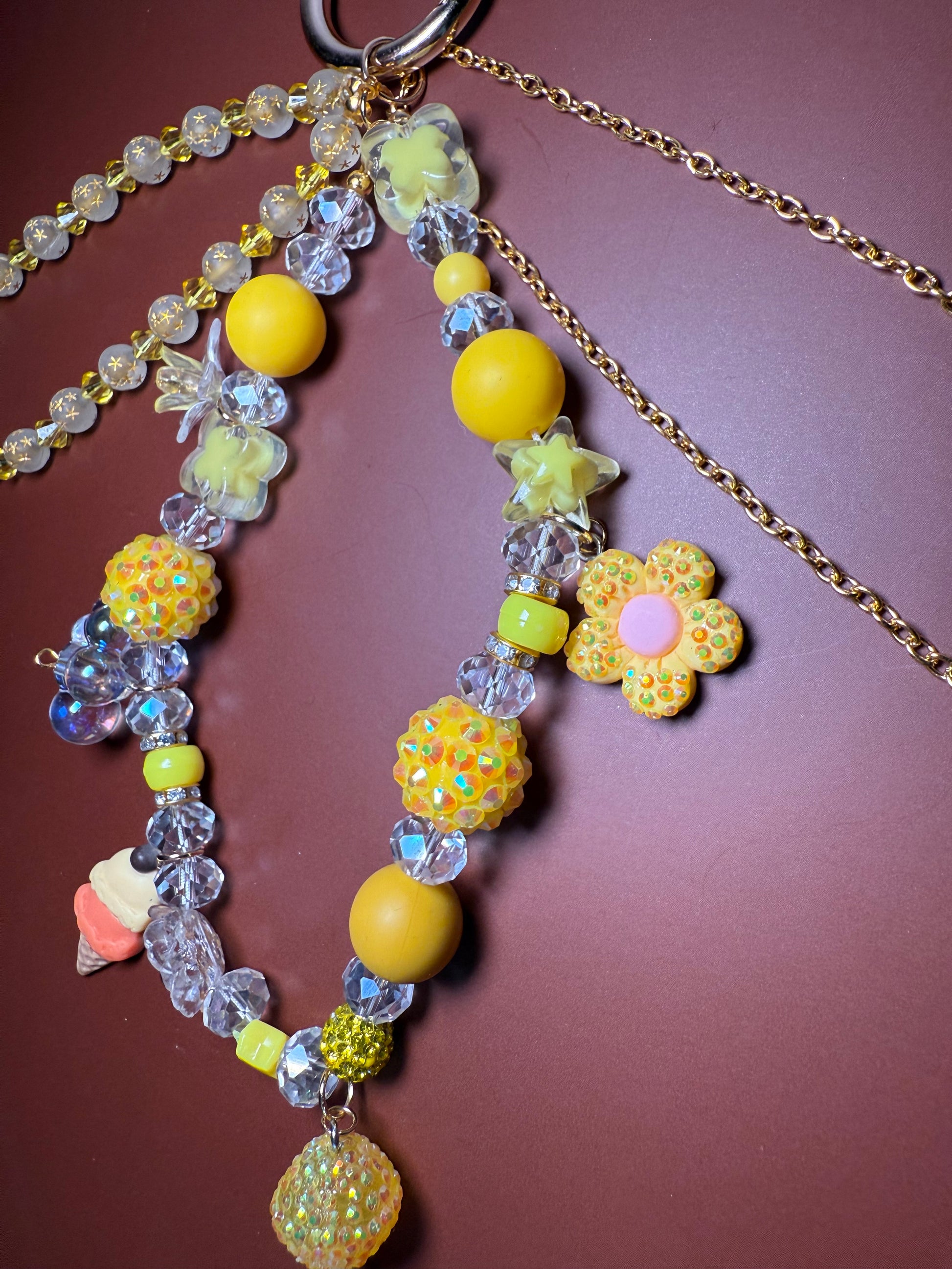 Elevate your purse game with our Yellow glamsucker Purse Charm. The bright yellow color and bedazzled beads and charms add a touch of glamour to any bag. Upgrade your style with this eye-catching accessory.